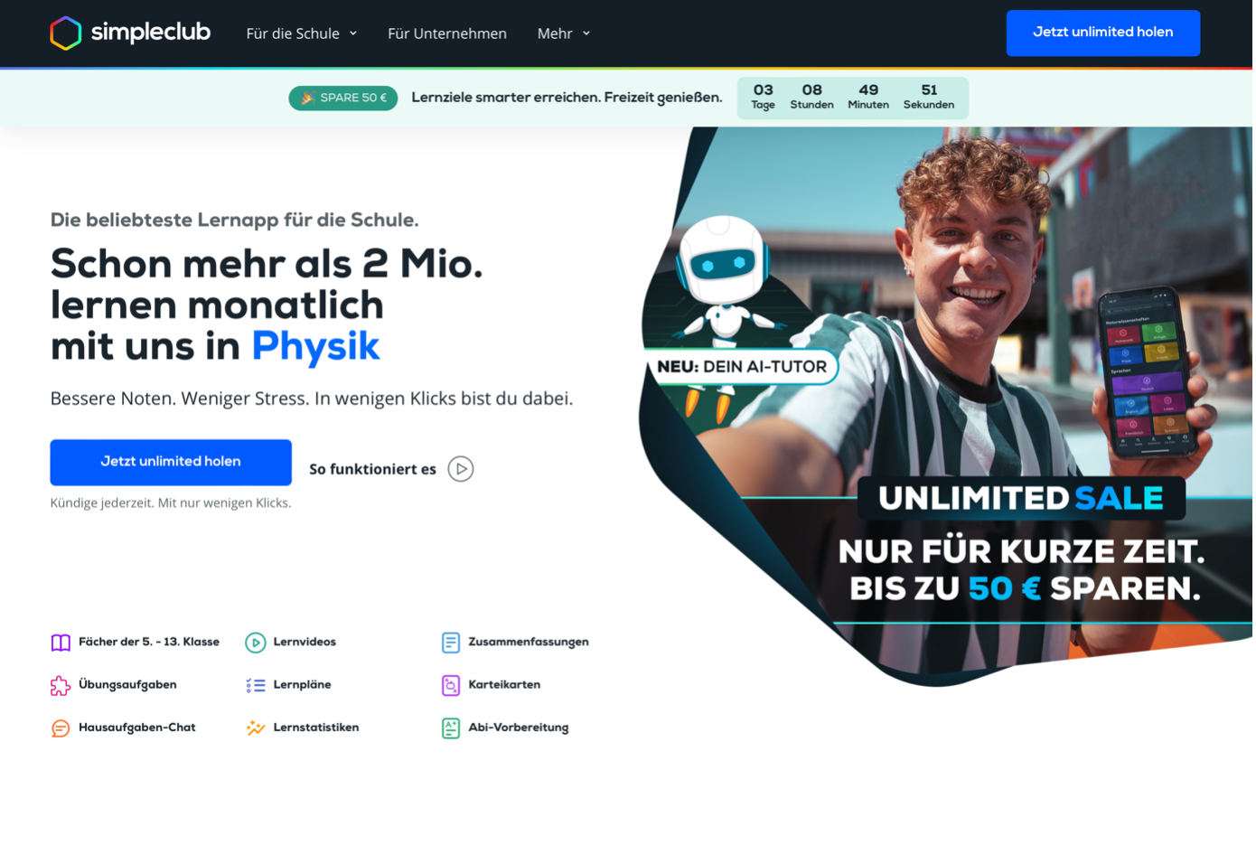 Auch ohne Abo bietet die App viele Möglichkeiten und die Lernvideos von Simpleclub sind besonders hilfreich. Wenn du die kostenpflichtige Version testen möchtest, kannst du dies 7 Tage lang kostenlos tun.