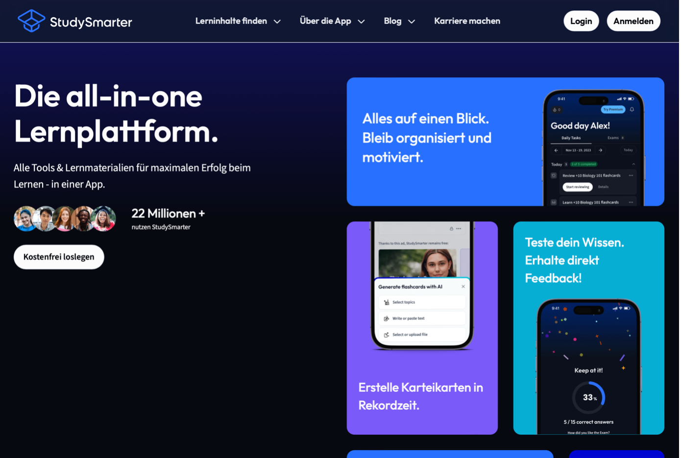 StudySmarter nennt sich selbst die „All-In-One“ Plattform für alles rund ums Lernen. Und tatsächlich bietet sie auch viele Funktionen, die dir bei der Vorbereitung auf Klassenarbeiten helfen können. Um die App nutzen zu können, benötigst du ein Benutzerkonto.