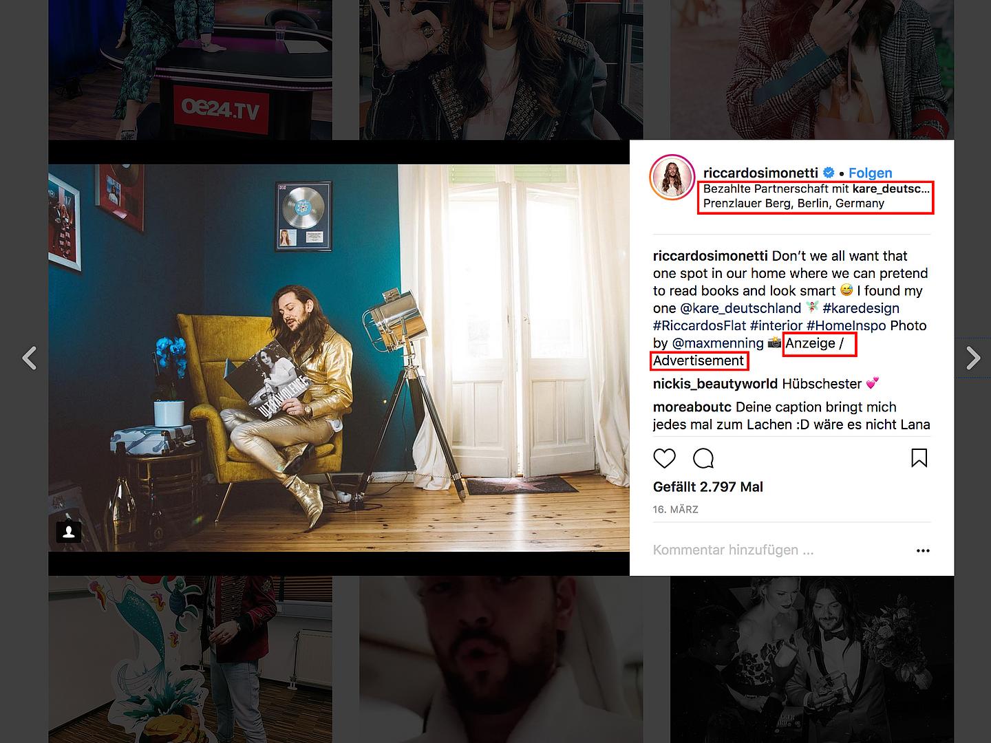 - in einem Text oder Bild: „Werbung“ oder „Anzeige“ muss als deutlich lesbarer Text zu Beginn des Beitrages oder der Bildbeschreibung hinterlegt werden